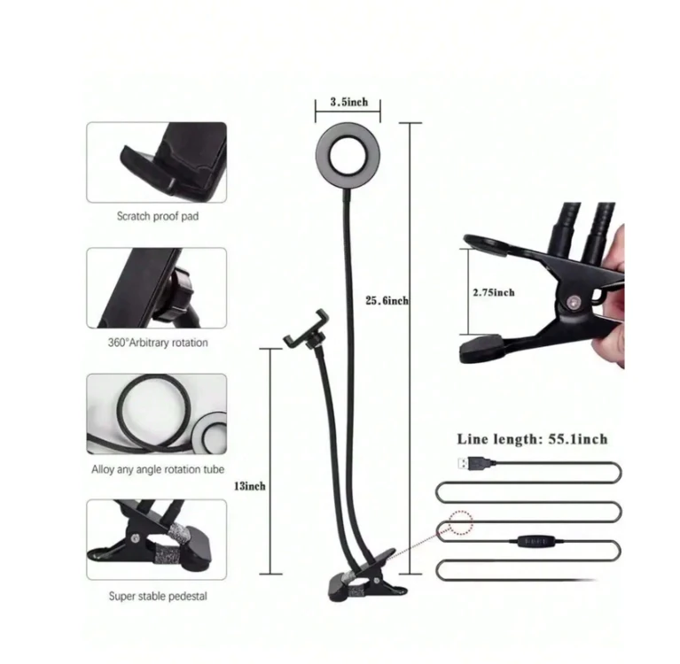 Introducing the 2-In-1 Stable Smartphone Holder With Ring Light, a versatile accessory designed to enhance your smartphone experience. This innovative vest combines a sturdy smartphone holder with a built-in ring light, providing you with the perfect solution for stable filming, video calls, and flawless selfies. The adjustable holder ensures a secure grip on your device, while the ring light offers three brightness levels to illuminate your surroundings for optimal visibility. Say goodbye to shaky videos and dimly lit shots – the Vest is your all-in-one solution for professional-quality content creation. Features: