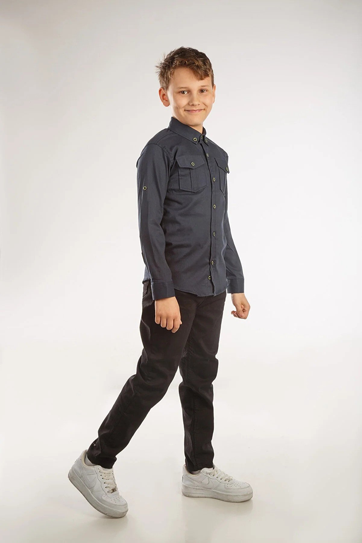 AJN Boy's Shirt Folded Sleeve Cotton Navy Blue SHIRT