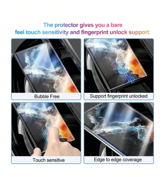 Introducing our 2 Pcs Full Cover Soft Hydrogel Film, meticulously designed to perfectly complement your Samsung Galaxy device. Unlike traditional tempered glass protectors, these hydrogel films provide an ultra-thin yet robust shield for your phone's screen. Crafted with precision, these films ensure full coverage, maintaining the sleek aesthetics of your Samsung Galaxy while offering exceptional protection against scratches, smudges, and minor impacts.