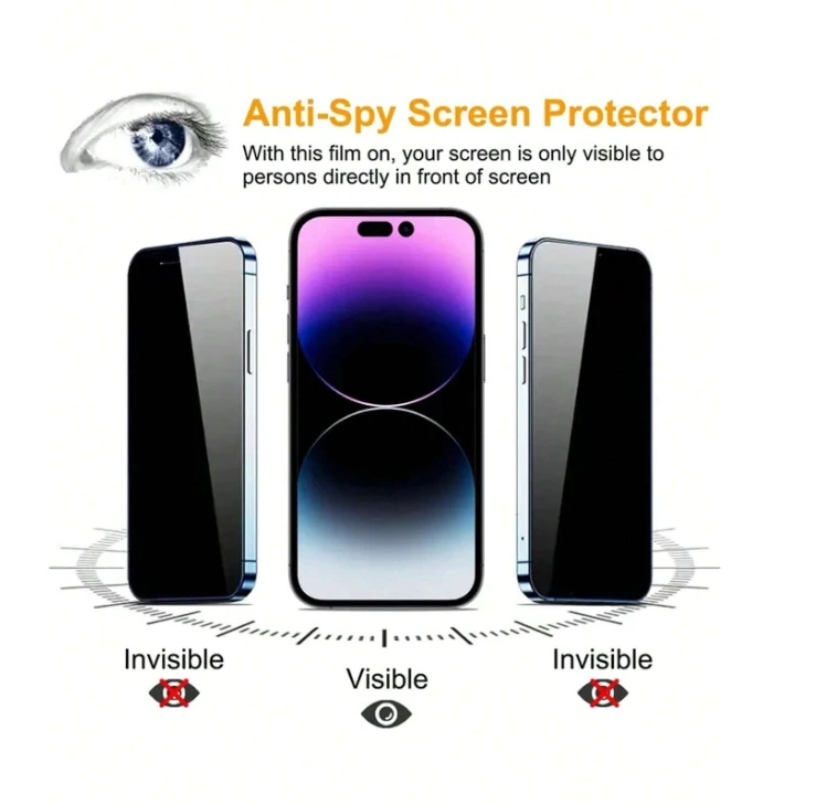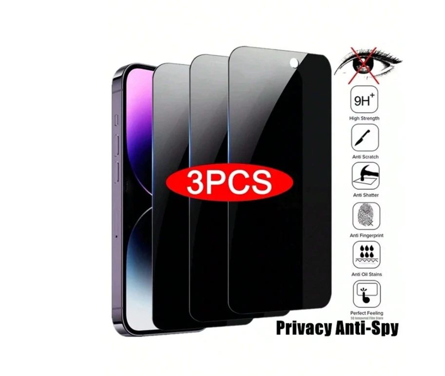 Introducing our cutting-edge 3pcs Anti-spy Phone Screen Protection Tempered Film, meticulously crafted to safeguard your Apple iPhone 15 series – including iPhone 15, 15 Plus, 15 Pro, and 15 Pro Max. This premium tempered film is designed to provide not only crystal-clear clarity but also an added layer of privacy, shielding your device from prying eyes. Key Features:
