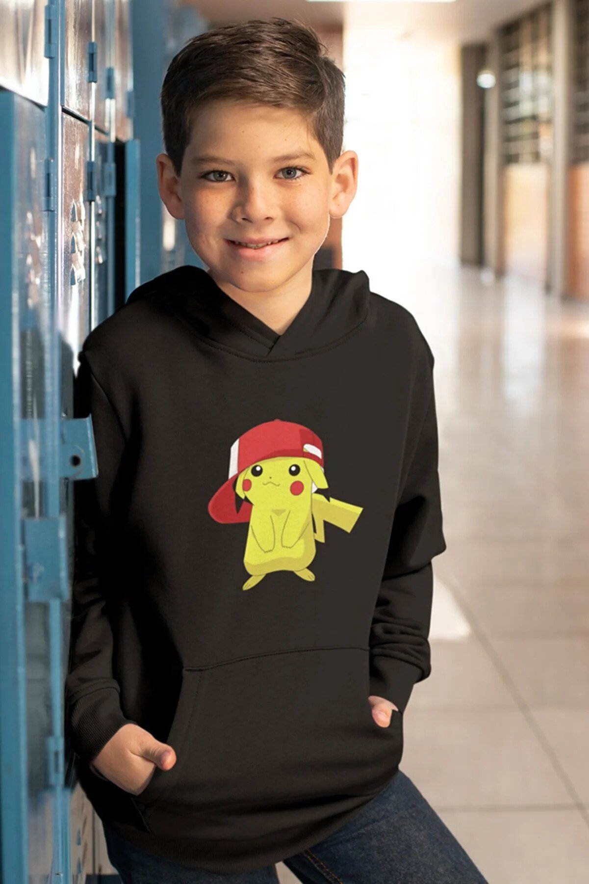 Introducing the Kio Design Pikachu Sweatshirt Hooded Kids – a must-have for all young Pokémon fans! This adorable hooded sweatshirt features a vibrant Pikachu design that will bring joy to your child's wardrobe. Made from high-quality, soft, and breathable fabric, it ensures maximum comfort for your little ones, whether they're playing outdoors or lounging at home. The sweatshirt comes with a cozy hood and a front pocket, perfect for keeping little hands warm. Available in various sizes to fit kids of different ages, this Pikachu hoodie is both stylish and practical.